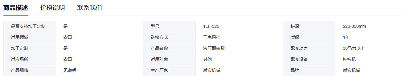 拖拉機懸掛 翻轉(zhuǎn)犁 土地深翻 1LF-325 支持定制 禹實機械 1臺