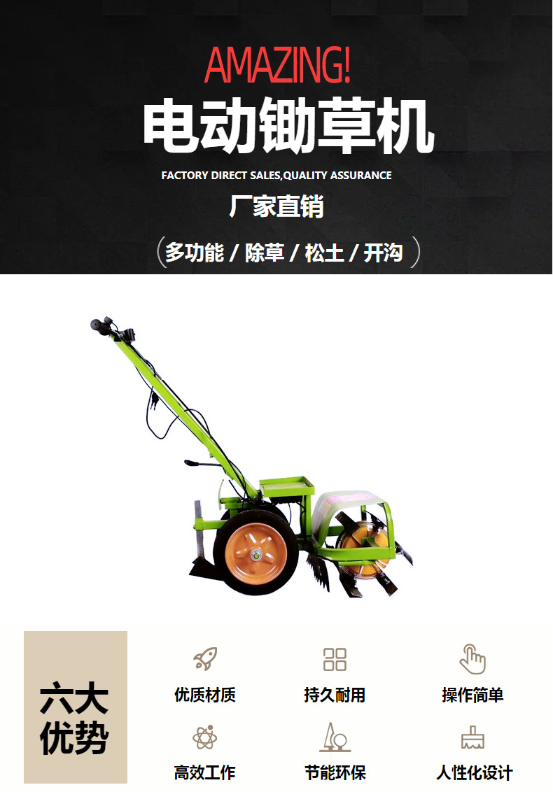 每小時(shí)鋤地1畝左右,輕便小巧提高人工效率,減輕勞動強(qiáng)度的特點(diǎn)