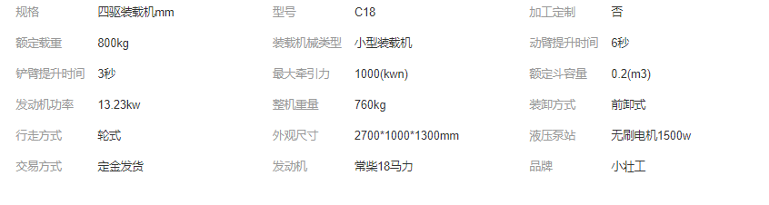 小壯工四驅鏟車裝載機 工地多功能推土機 家用柴油動力小鏟車C18