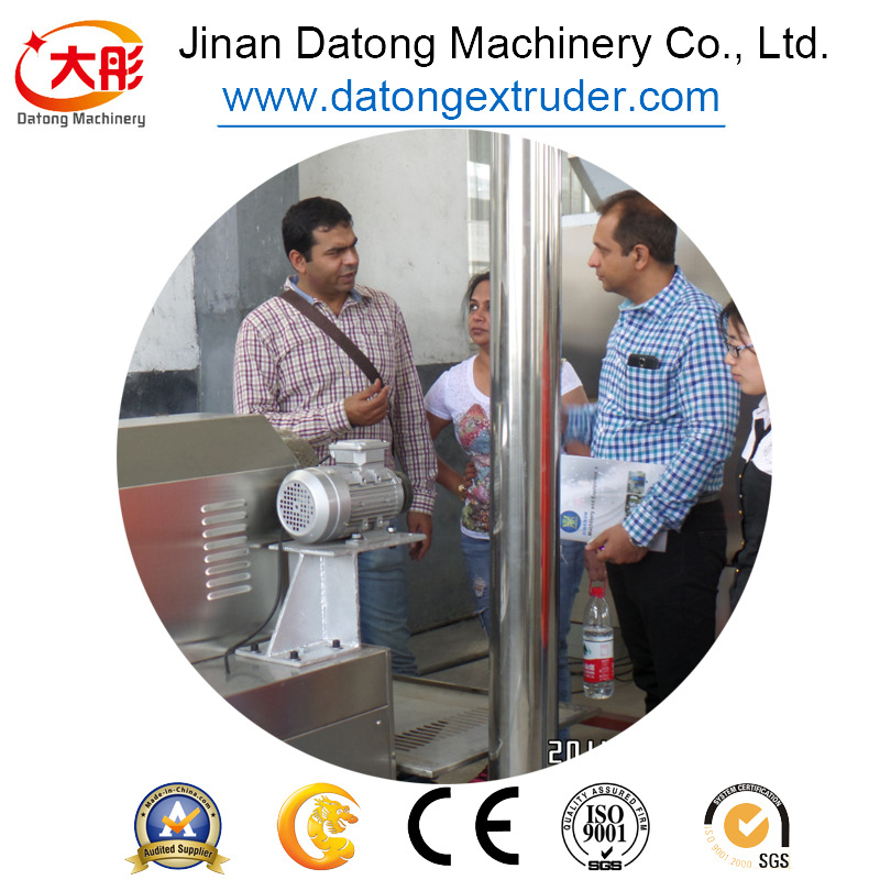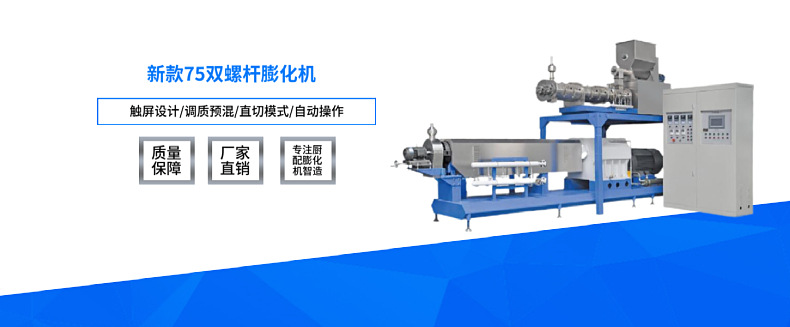C) SLG65-III雙螺桿膨化機:根據(jù)生產(chǎn)線產(chǎn)量的不同選用不同型號的SLG型膨化主機,產(chǎn)量可從100kg/h--300kg/h不等,原料可以玉米粉、米粉、面粉、谷粉等為原料。