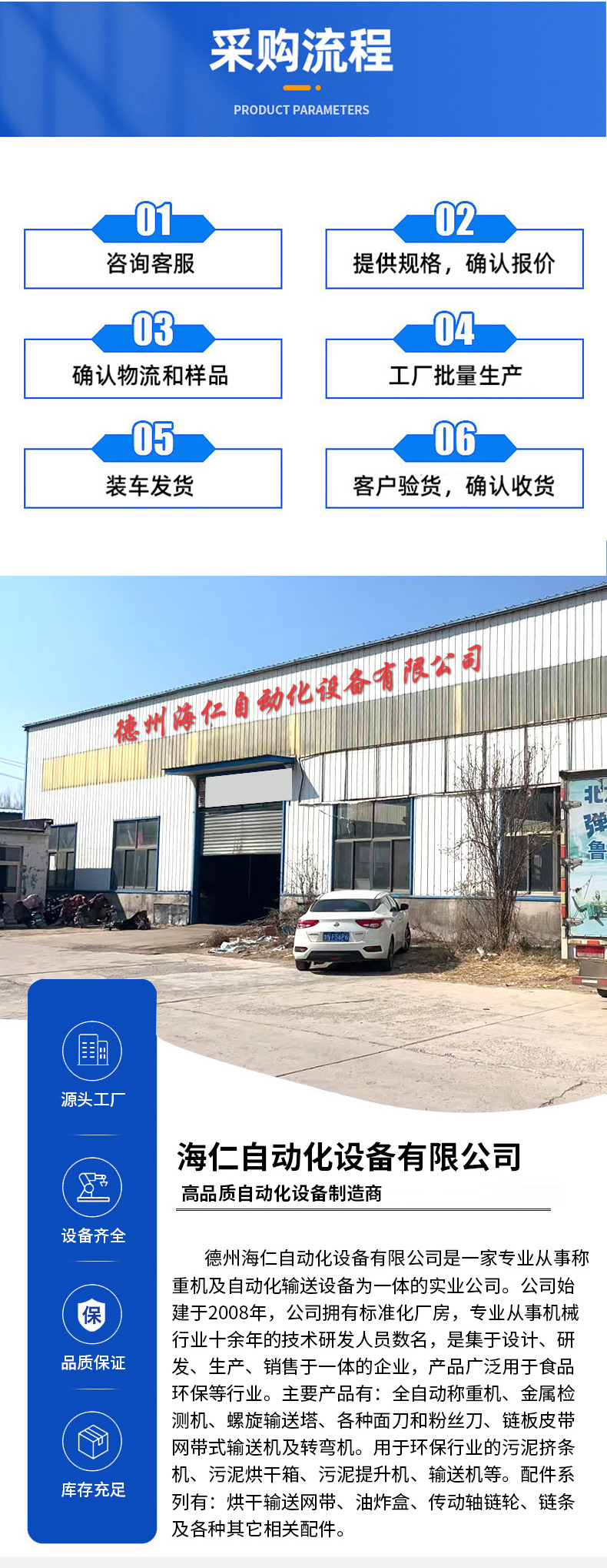 詳細(xì)信息 商品屬性 品牌海仁 適用對象食品包裝機廠/食品廠 主要銷售地區(qū)中國 是否跨境出口專供貨源否 尺寸可定制 重量詳詢 適用場景食品廠 功能包裝輔助 商品描述