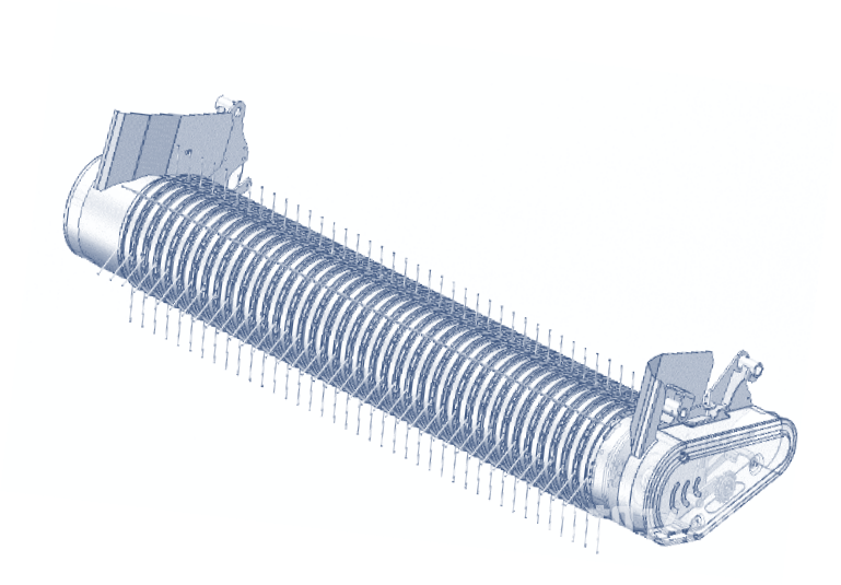 2、超寬的撿拾器設(shè)計,不但提高了對草條的覆蓋能力,使撿拾變的更加干凈,而且契合國家補(bǔ)貼政策,提高終端市場的競爭力。同時在有導(dǎo)軌撿拾器基礎(chǔ)上又開發(fā)了無導(dǎo)軌撿拾器,升級后的無導(dǎo)軌撿拾器彈齒梁增加為6根,導(dǎo)料輥增加為2組,更有利于物料順暢均勻的通過,使其性能更加穩(wěn)定卓越,同時作業(yè)效率也提高了20%。