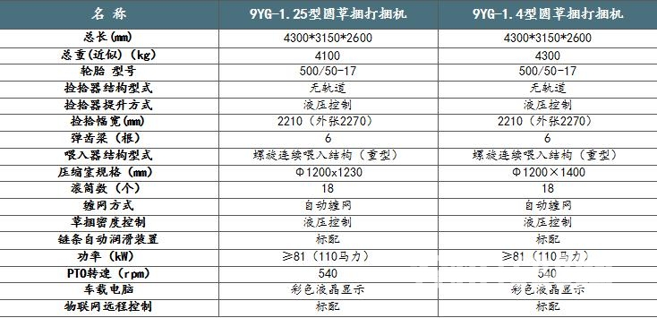 琦誠9YG系列圓草捆打捆機(jī)技術(shù)參數(shù):