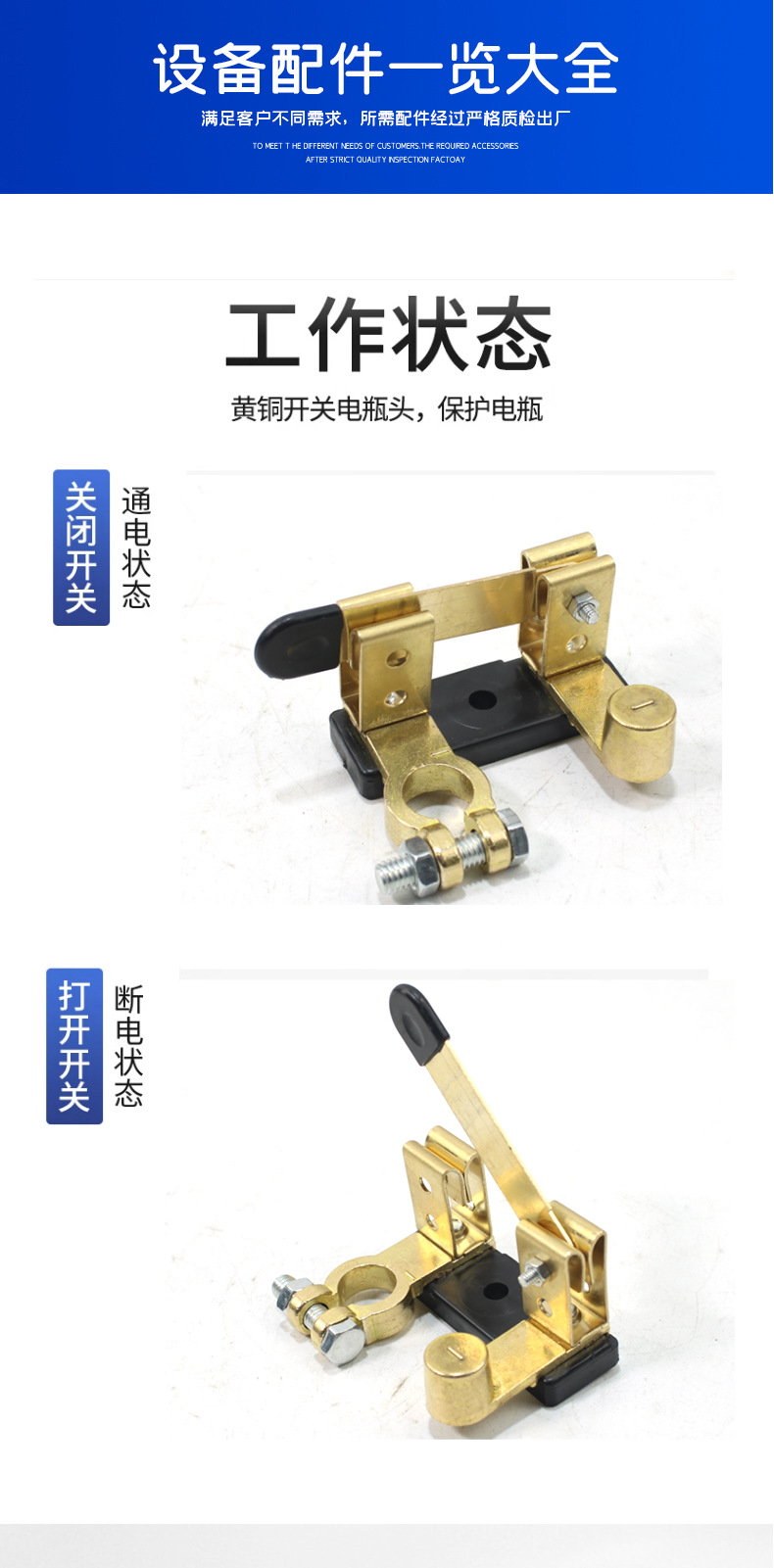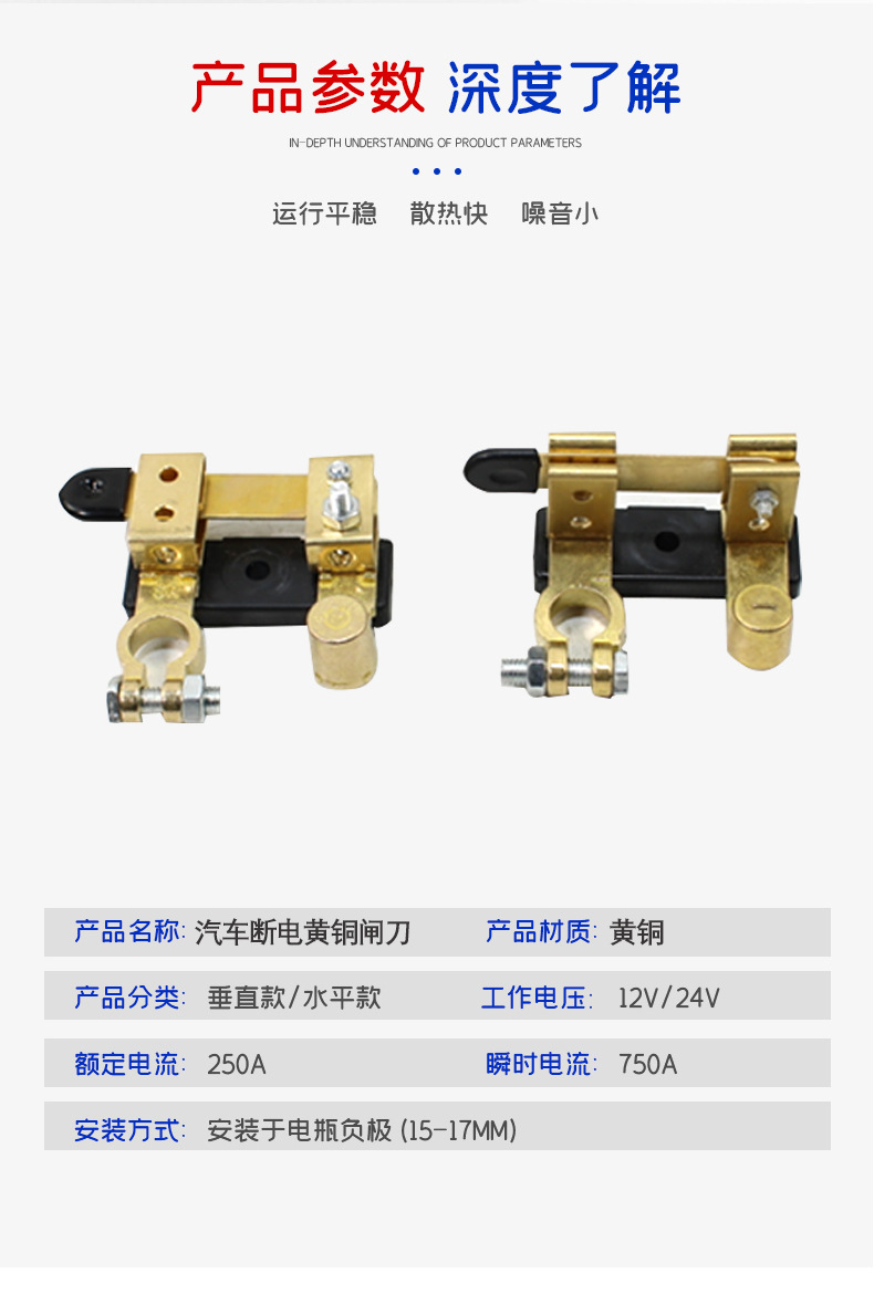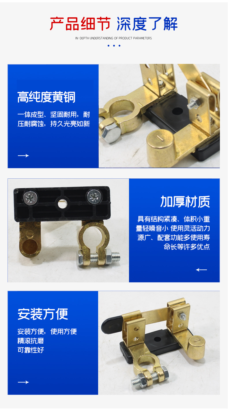 汽車電瓶開關(guān)黃銅刀閘防漏電保護(hù)斷電手動負(fù)極閘刀純銅蓄電池總閘