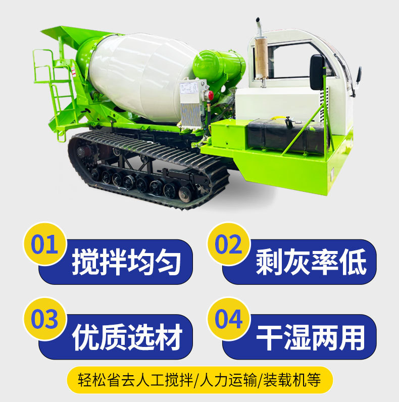 爬山虎履帶運(yùn)輸車全地形爬坡王水泥攪拌機(jī)小型履帶式混凝土攪拌車