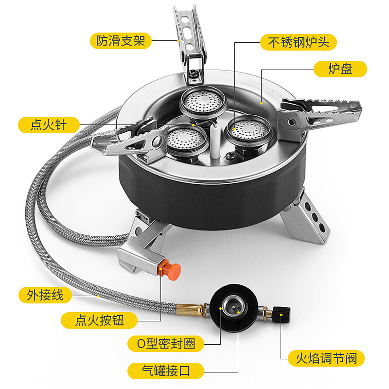 戶外三頭爐野外防風便攜露營爐具丁烷燃氣爐兩用瓦斯爐式煤氣爐灶