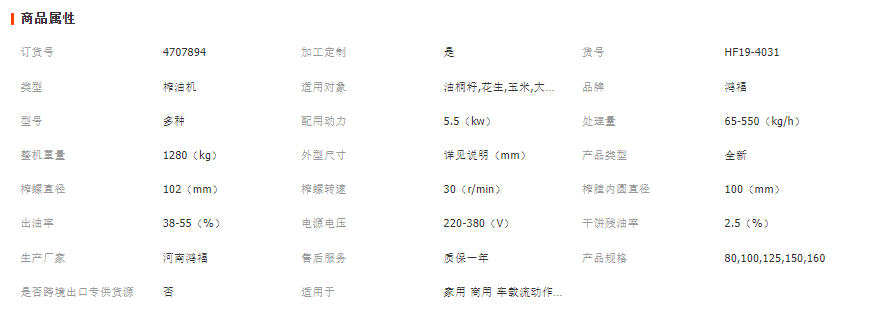 螺旋榨油機(jī)可壓榨:菜籽、棉籽、大豆、花生、胡麻籽、棕櫚、椰殼、橄欖果、蓖麻、蘇籽、芝麻、葵花籽、米糠、玉米胚芽、核桃、杏仁、月見草、茶籽、松籽、米糠、油棕果、油桐籽、烏桕籽、花椒籽等油料作物。