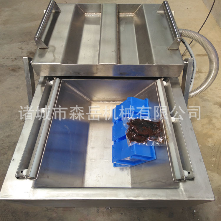 下凹式真空包裝機(jī)是針對(duì)于市場(chǎng)半液體、液體產(chǎn)品的生產(chǎn)專門設(shè)計(jì)的,使機(jī)體工作平臺(tái)形狀為凹槽式樣,物料放置處采用下凹型結(jié)構(gòu),袋口立封形式,封口高度提高,防止液體溢出,從而提高工作效率。下凹式真空包裝機(jī)是非標(biāo)設(shè)備,需要根據(jù)客戶需求加工定做,下凹的尺寸、傾斜度是根據(jù)包裝袋的尺寸、產(chǎn)品的性質(zhì)決定的,確保設(shè)備的實(shí)用性。