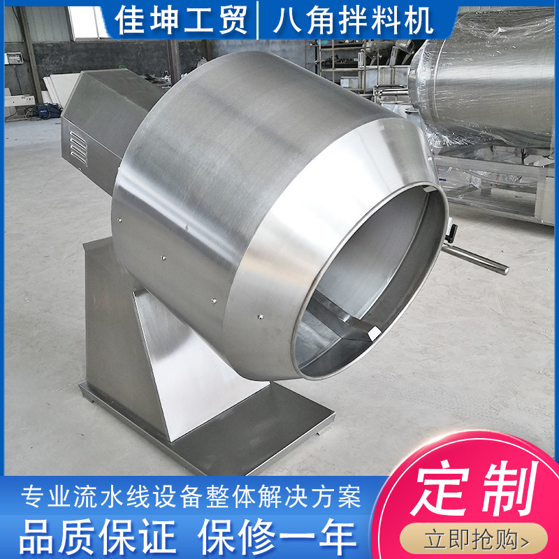 八角拌料機(jī)該機(jī)主要用在油炸食品的拌糖(如,紅桔餅、角蜜、金果、口酥等)、拌芝麻(如,芝麻球、開(kāi)口笑、芝麻條等)、休閑食品拌佐料(如,鍋巴、毛耳、香辣脆等)。