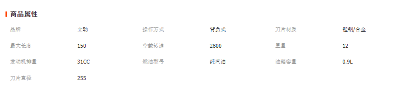 發(fā)動機型號:139FA/HS39發(fā)動機 形式:風(fēng)冷單缸四沖程汽油機 排量:31CC 功率》0.7KW/6500r/min 發(fā)動機怠速:2800-3200r/min 化油器形式:膜片式, 油箱容積:0.9L 機油箱容積:0.1L 工作桿直徑:26mm