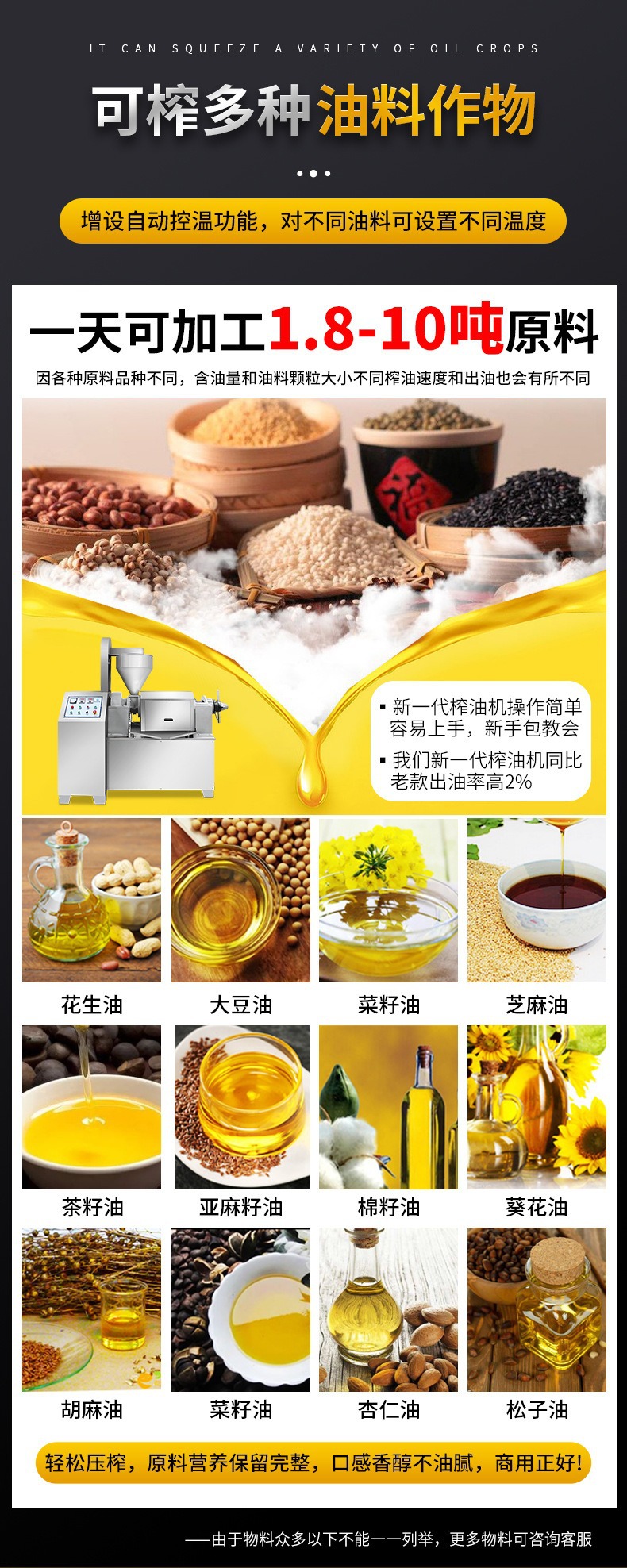 商用榨油機全自動家用不銹鋼榨油機油坊專用花生菜籽螺旋式榨油機