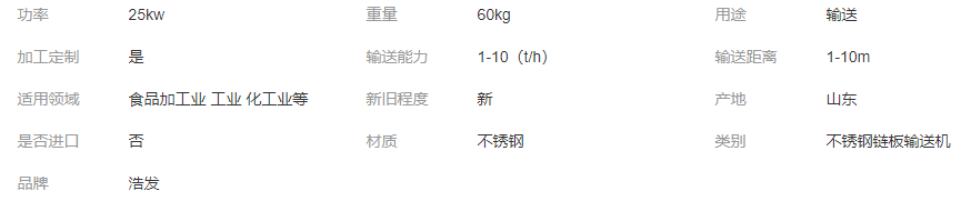 公司的產(chǎn)品型號(hào)有哪些? 鏈板輸送機(jī)的節(jié)距是否均勻? 鏈板輸送機(jī)的輸送距離是多少? 浩發(fā)鏈條機(jī)械有哪些其他產(chǎn)品? 產(chǎn)品是焊接制作的嗎? 物料在輸送線之間過渡平穩(wěn)嗎? "這款送輸機(jī)是否耐用?", 公司有哪些先進(jìn)的生產(chǎn)設(shè)備?