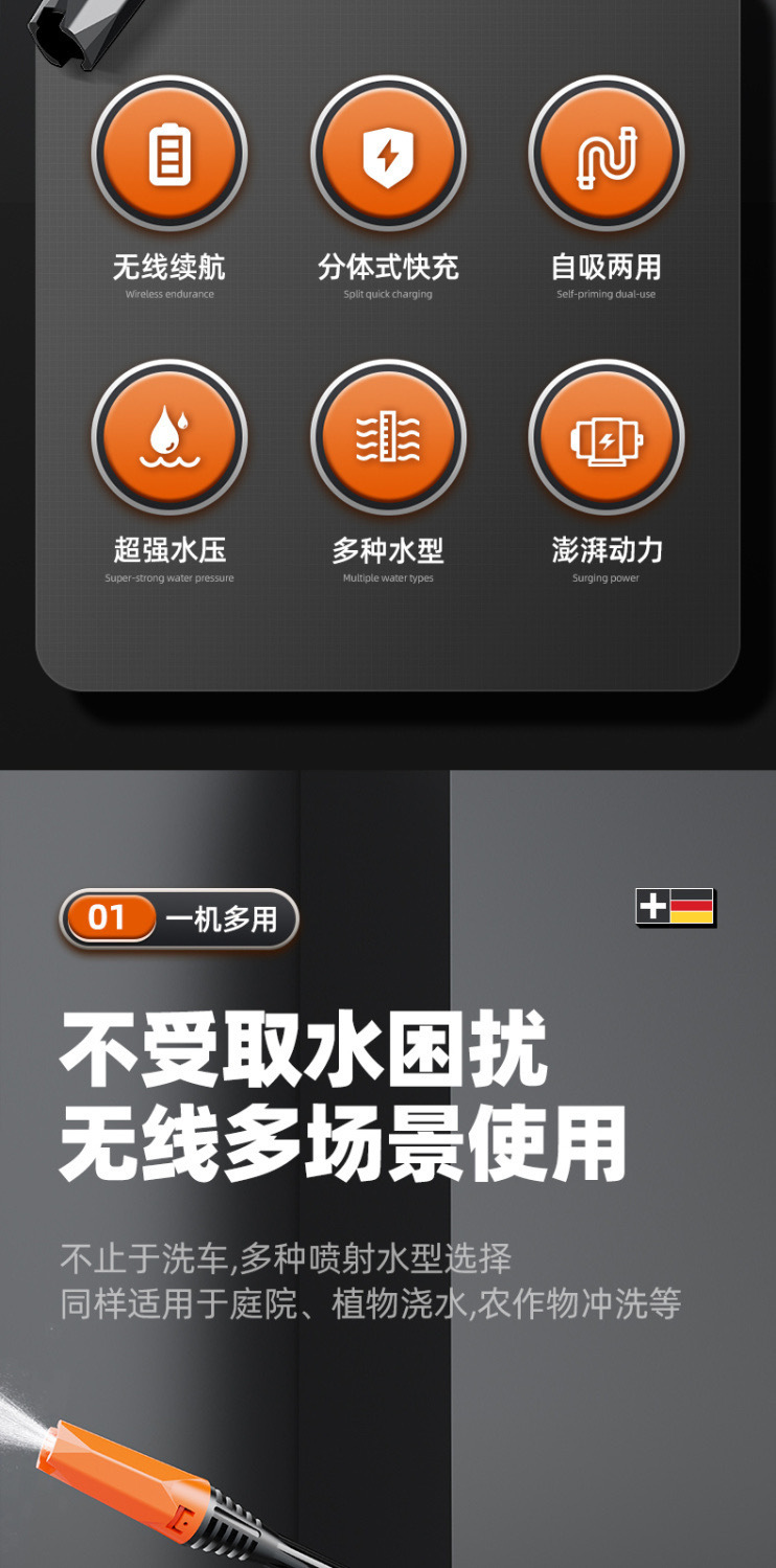 無線洗車機(jī)車用家用便攜式充電高壓水槍鋰電池水泵刷車搶清洗神器