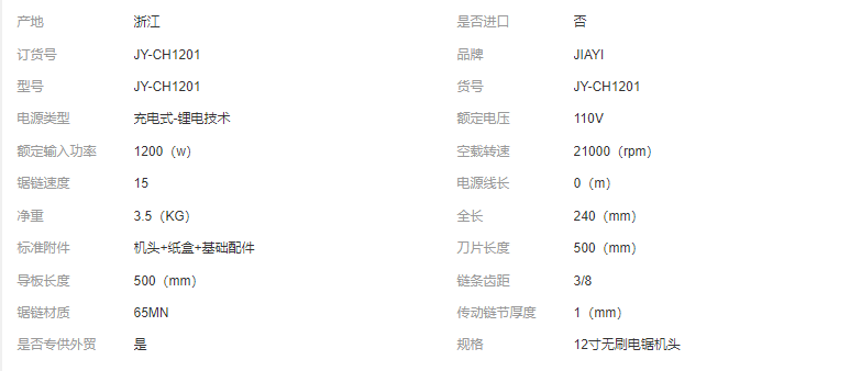 嘉易私模12寸無(wú)刷高鏈速電鏈鋸鋰電充電式專(zhuān)業(yè)伐木戶外帶剎車(chē)電鋸