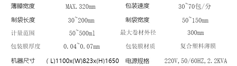 包裝速度30~70(袋/分鐘)