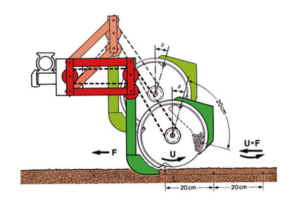 播種盤轉速與拖拉機行駛速度相同,方向相反,可實現零速落種,落地高度離地面僅3厘米,保證精確落種。