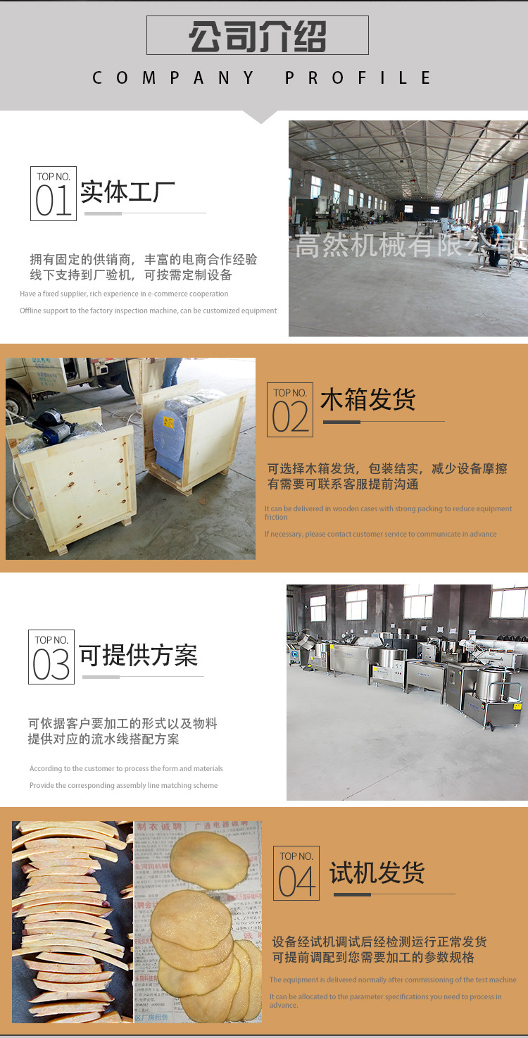 諸城市高然機械生產的切片機,單入料口每小時產量為300公斤,此設備操作方便,產量高,切出的片厚薄均勻、光滑,切片厚度1-7mm之間,可隨意調節(jié)厚薄,破碎率低。