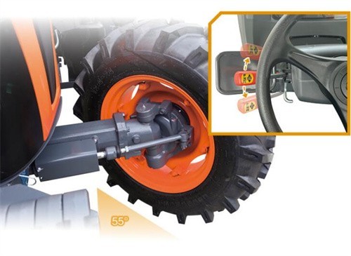 久保田拖拉機(jī)擁有55度大轉(zhuǎn)向角,轉(zhuǎn)彎更為快捷,縮短作業(yè)時(shí)間、降低燃油消耗、 提高工作效率。(注M854- KS(G4)和M854 -KQS(G4)的最大轉(zhuǎn)向角為50度)