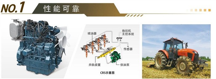 后處理方面采用了EGR(廢氣再循環(huán))+DOC(催化轉(zhuǎn)化器)+DPF(顆粒捕捉),配合優(yōu)良的進(jìn)氣系統(tǒng)和精準(zhǔn)的供油系統(tǒng),使久保田拖拉機(jī)保證高功率輸出的同時(shí),達(dá)到了非道路國(guó)四的排放標(biāo)準(zhǔn)。