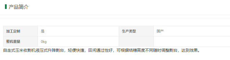 | 自走式玉米收割機配置動力 | 33千瓦 |