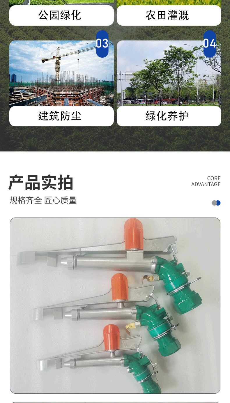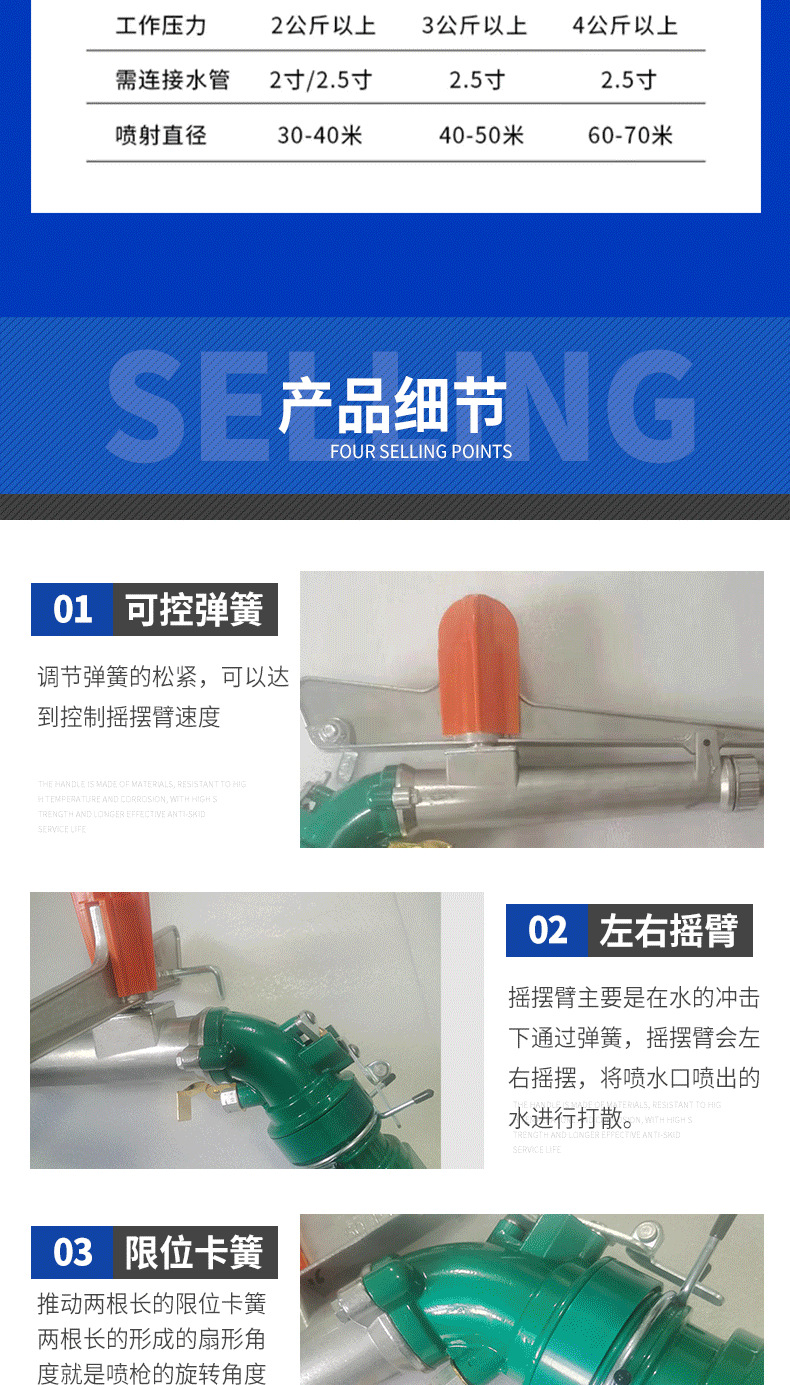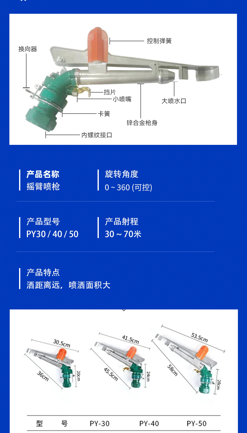 新款PY30PY40PY50搖臂噴槍360度可調(diào)旋轉(zhuǎn)噴頭澆地灌溉金屬噴槍
