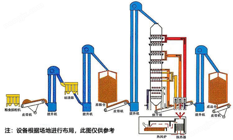 5HZX-36糧食烘干機(jī)(塔)工藝流程: