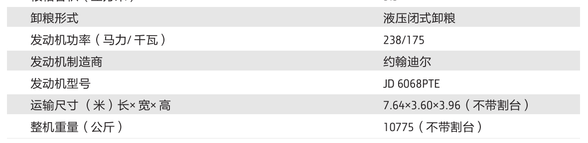● 用途廣泛,動(dòng)力強(qiáng)勁穩(wěn)定,可靠性高:切流脫粒滾筒與縱向雙軸流分離滾筒(CTS),配備相應(yīng)部件,可實(shí)現(xiàn)小麥、水稻、玉米、大豆等多作物收獲;搭載值得信賴的約翰迪爾PowerTech 6.8升渦輪增壓發(fā)動(dòng)機(jī),動(dòng)力高達(dá)238馬力,平均12000小時(shí)大修時(shí)間,2500小時(shí)平均無(wú)故障間隔時(shí)間,2年三包期讓您無(wú)后顧無(wú)憂。