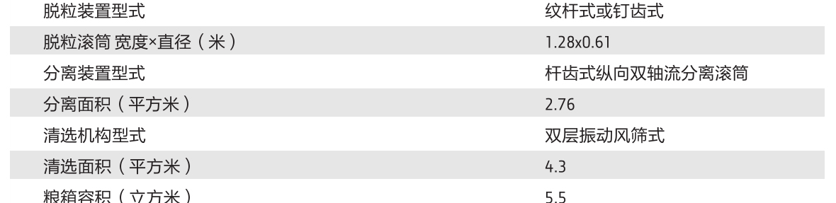 ● 收割效果好:專利縱向雙軸流桿齒分離滾筒,分離滾筒喂入口大,標(biāo)配柵格脫粒凹板,有效降低收獲稻麥的谷物破碎;更優(yōu)的分離及物料通過(guò)性能,保證更高的喂入量下的收獲質(zhì)量。