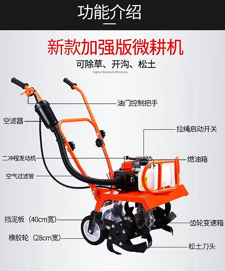 小型微耕機新款農(nóng)用耕地翻土機耕田多功能翻地機迷你家用旋耕機