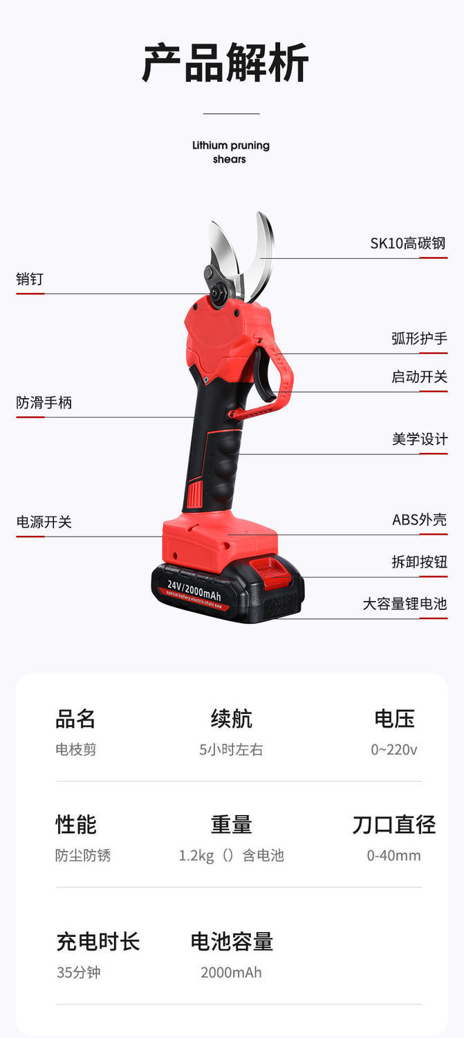 電動修枝剪刀果樹修枝剪充電強力園林鋰電樹枝剪充電式粗枝剪