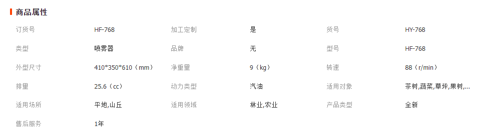 本產(chǎn)品為動力噴霧器,加汽油用,動力強勁,配置一個噴槍,兩個噴桿。 有任何細節(jié)問題,可咨詢客服,或者直接致電 13968557862