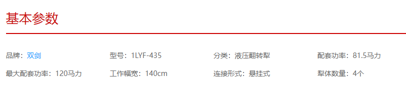 雙劍1LYF-435液壓翻轉(zhuǎn)犁技術(shù)參數(shù)