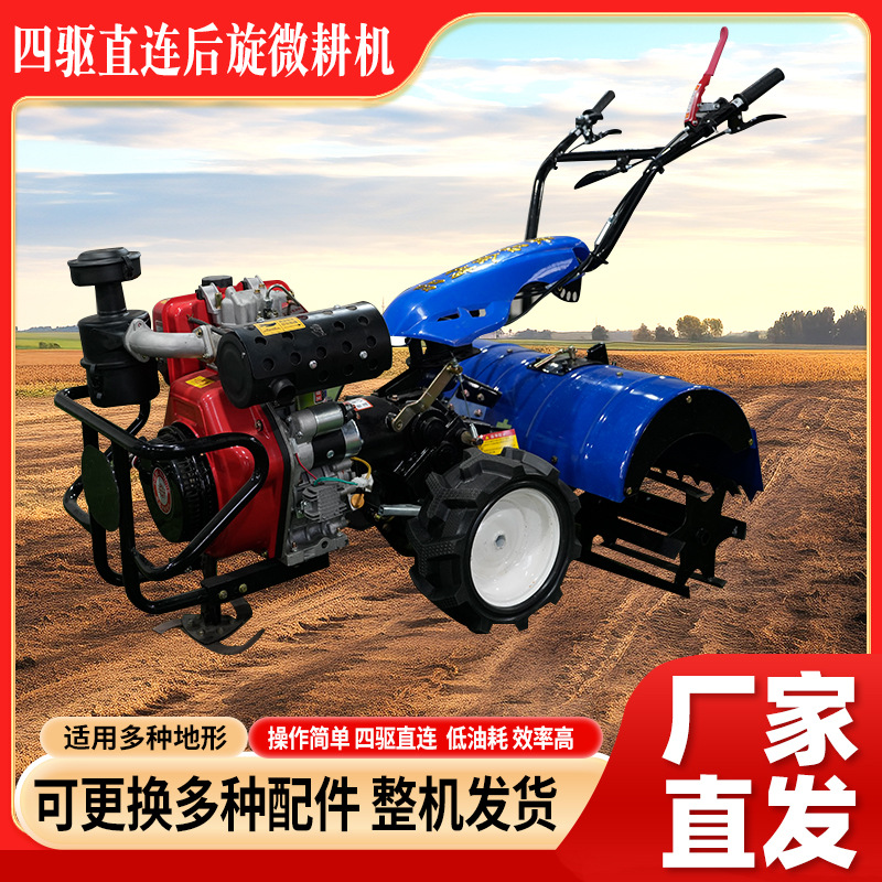 四驅(qū)直連后旋微耕機(jī)農(nóng)用耕地起壟開溝旋耕機(jī)家用汽油小型除草機(jī)器