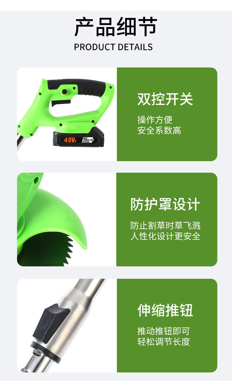 電動割草機多功能除草機充電鋰電池開荒割草家用大功率電動割草機