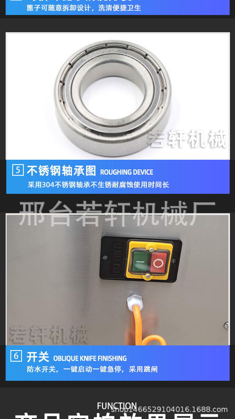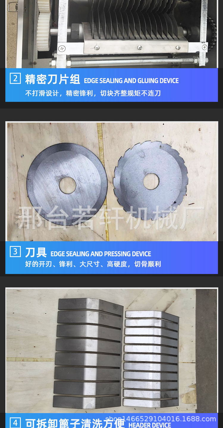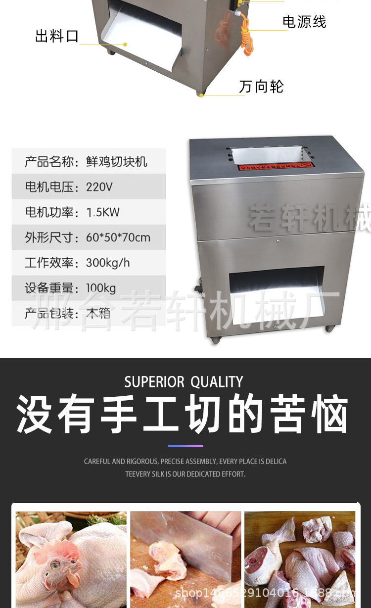 詳細(xì)信息 訂貨號(hào)15075912923 加工定制是 貨號(hào)若軒機(jī)械 種類切肉機(jī) 品牌若軒 型號(hào)RX-300 電壓220(V) 功率1.5(kw) 凈重90(kg) 包裝木箱包裝 外形尺寸430*520*850(mm) 產(chǎn)品用途鮮活禽類 雞鴨魚鵝肉切塊機(jī)