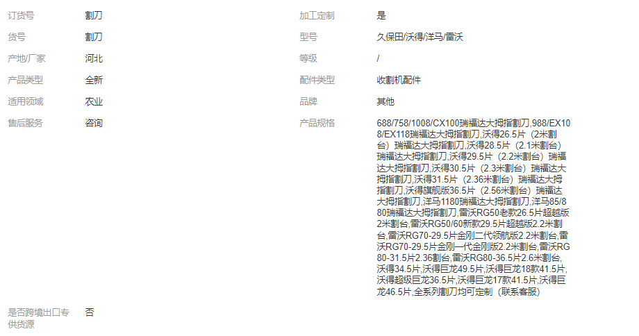 久保田割刀688/988不銹鋼收割機(jī)配件農(nóng)機(jī)配件割刀總成加工定制