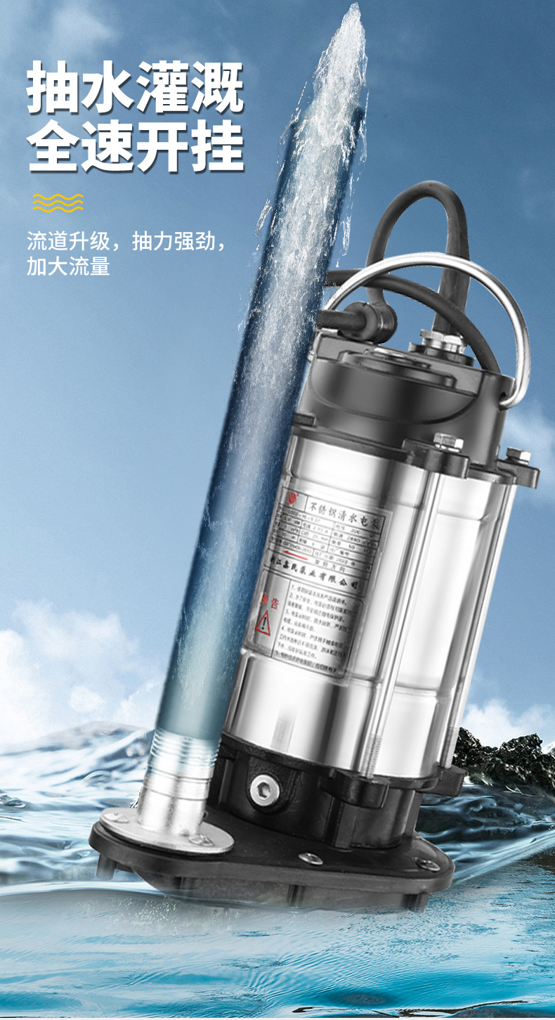 不銹鋼潛水清水泵一寸高揚(yáng)程家用抽水水泵水井灌溉單相抽水機(jī)220V