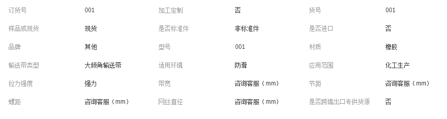 主營產(chǎn)品或服務(wù): 輸送帶; 滾筒; 清掃器; 托輥; 傳輸帶; 輸送帶廠; 耐熱輸送帶; 輸...