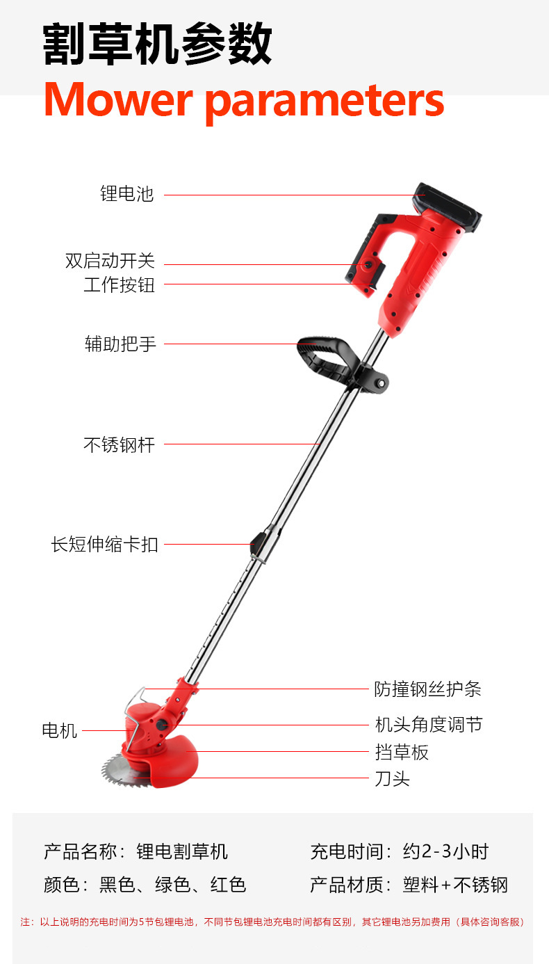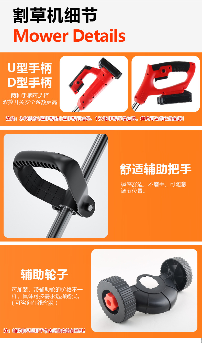 充 電 式 割 草 機(jī) 支持一件代發(fā) 需要裸機(jī)選項(xiàng)或(加裝輔助輪選項(xiàng)的)請(qǐng)留言好顏色款式,沒備注隨機(jī)發(fā)貨 產(chǎn)品可接受顏色定制 有歐規(guī) 國(guó)標(biāo) 美規(guī)可選 請(qǐng)聯(lián)系在線客服咨詢,默認(rèn)國(guó)標(biāo)發(fā)貨 此產(chǎn)品不含稅,需要發(fā)票聯(lián)系在線客服咨詢需要加收稅點(diǎn)