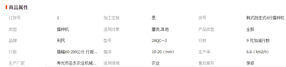 播種機(jī)參數(shù)