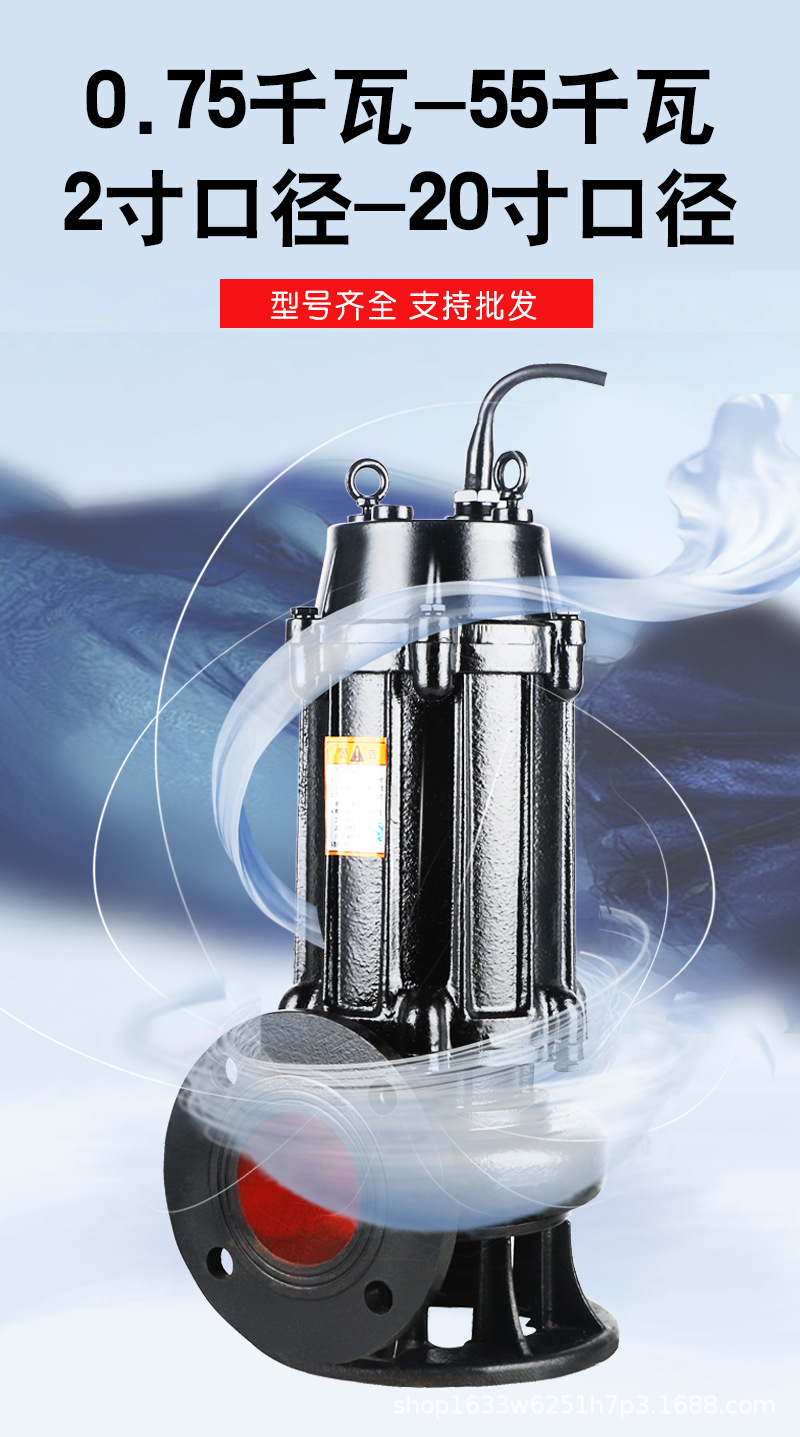 首頁 > 供應(yīng)產(chǎn)品 > 小型潛水排污泵定做 4KW無堵塞單三相污水泵 家用生活廢水處理泵