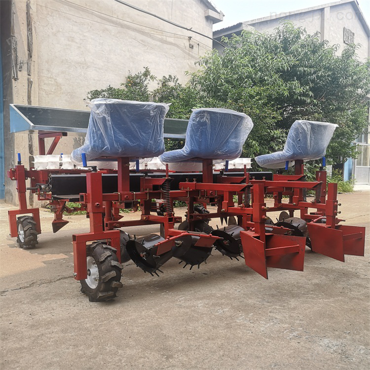 三行藥材移栽機采用高精度的喂入器組件,高質(zhì)量、高效率地將秧苗運送到移栽機上,移栽苗苗直立良好,無滲漏。株數(shù)、行距、移栽深度可調(diào)。土地適應性較強。用料、用工、制作精良。耐用,易于維護。易于操作。用戶操作方便,適用范圍較廣。減少用戶不必要的資金支出,減少人工勞動,減少人工成本,解決人工勞動效率低的問題,提高農(nóng)業(yè)設(shè)備的機械自動化程度,更加人性化,符合現(xiàn)代農(nóng)學的要求。