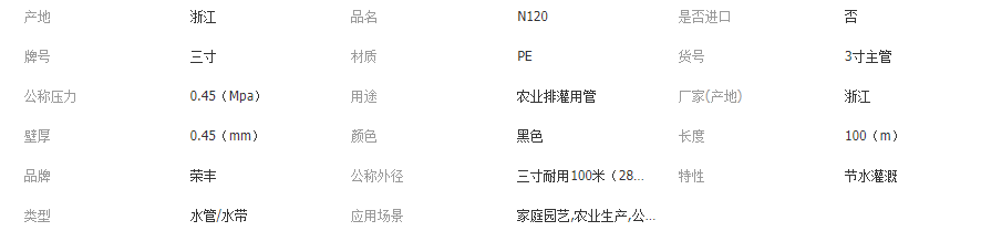 農用蔬菜澆水N120主管種植灌溉設備PE水帶節(jié)水灌溉三寸黑色輸水帶