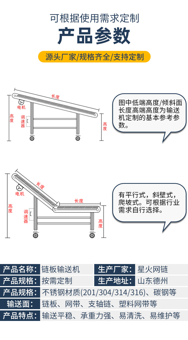不銹鋼鏈板提升機輸送機工業(yè)上料輸送帶流水線小型爬坡板鏈傳送機