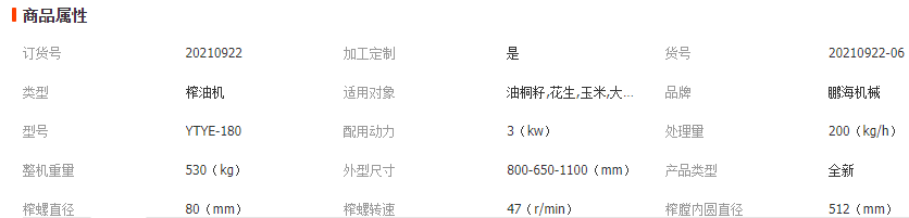液壓榨油機(jī)是機(jī)械榨油中操作簡(jiǎn)單,出油率高,更換易損件少的一種小型榨油機(jī),是目前替代小磨香油手工操作的先進(jìn)設(shè)備,每次榨取量少、時(shí)間短,可以讓市民花錢購(gòu)真貨,保證來(lái)料快速加工(自己的材料生產(chǎn)自己的油)所榨出的油質(zhì)淳香純正,有用戶油坊的必備產(chǎn)品。