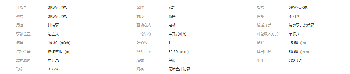 錦超可定制農(nóng)用潛水泥漿泵無堵塞污水泵 3KW高揚(yáng)程排污泵廠家直供