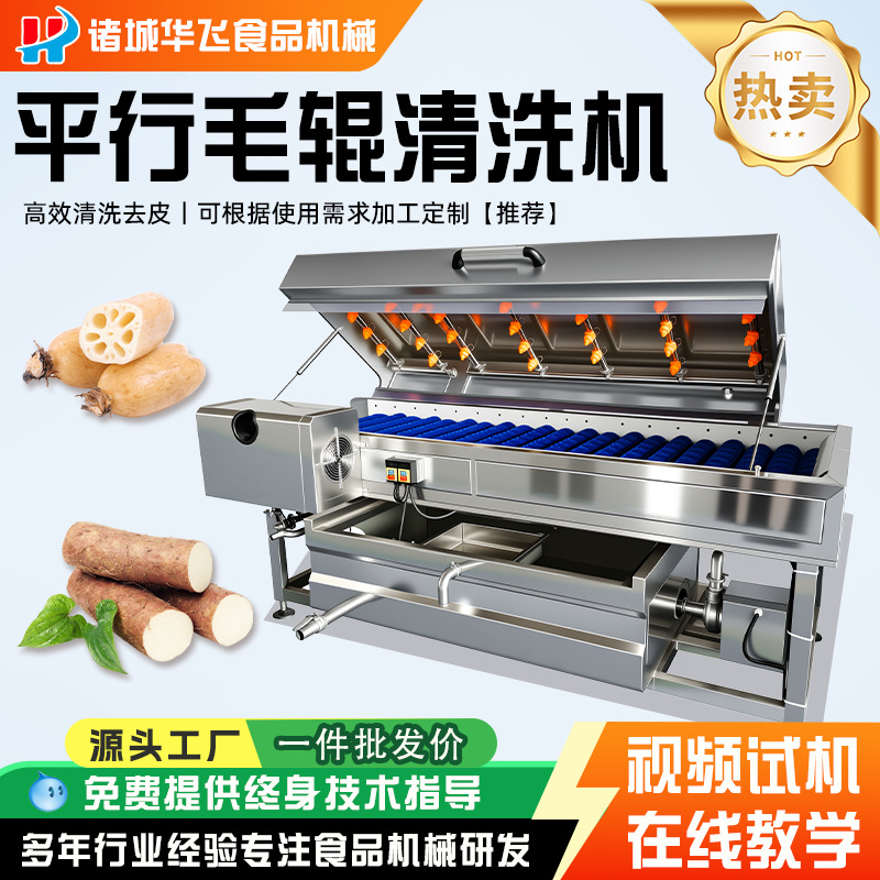全自動平行毛輥清洗機土豆山藥紅薯生姜清洗去皮機高壓噴淋清洗機