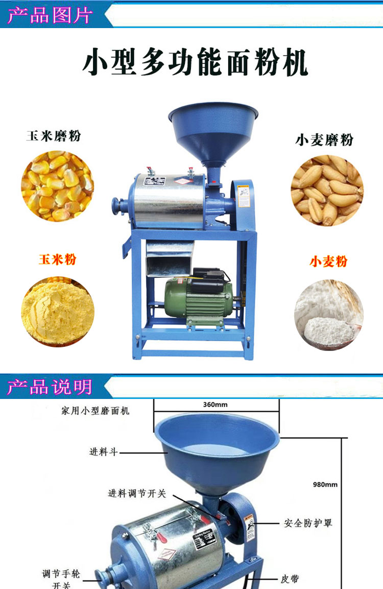 家用磨面機(jī)小型兩相電面粉機(jī)小麥玉米雜糧磨面機(jī)