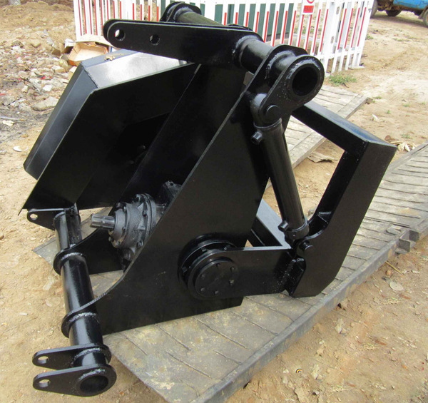 新式開(kāi)溝機(jī)是一種高效實(shí)用的新型鏈條式開(kāi)溝裝置。其主要由動(dòng)力系統(tǒng)、減速系統(tǒng)、鏈條傳動(dòng)系統(tǒng)和分土系統(tǒng)組成。柴油機(jī)經(jīng)過(guò)皮帶將轉(zhuǎn)動(dòng)傳遞到離合器后,驅(qū)動(dòng)行走變速箱、傳動(dòng)軸、后橋等來(lái)實(shí)現(xiàn)鏈條式開(kāi)溝機(jī)的向前或向后的直線運(yùn)動(dòng)。