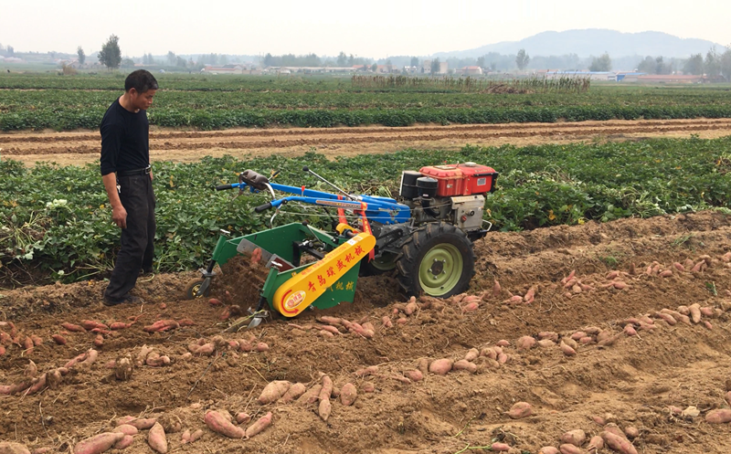 本公司生產(chǎn)的與手扶拖拉機(jī)配套的馬鈴薯收獲機(jī)是一種新型馬鈴薯收獲機(jī)械設(shè)備,有直聯(lián)式聯(lián)接和牽引式聯(lián)接。均適用于各地手扶拖拉機(jī)的聯(lián)接形式。該機(jī)主要適應(yīng)于農(nóng)戶及山區(qū)丘陵等,種植地塊及面積較小的農(nóng)田作業(yè)需求。清除薯秧后,可實(shí)現(xiàn)挖掘、薯土分離、集條鋪放,整個(gè)作業(yè)過程順暢,可收獲單壟單行或單壟雙行,使用該機(jī)連接方便操作靈活、實(shí)用性強(qiáng)。收獲效率高、埋薯率低、無破損,該機(jī)可以通過作業(yè)將土壤中殘存的農(nóng)膜直接翻于地上面,更方便清理,有利于下一季作物生長(zhǎng),深得各地用戶的青睞。